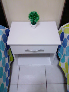 O criado mudo que foi salvo pelo gongo, se vcs olharem direitinho, ele esta totalmente no chão, foi justamente onde precisei cortar para tirar o pedaço que tava fofo da água. Marido falou que vai colocar uns pézinhos nele.
